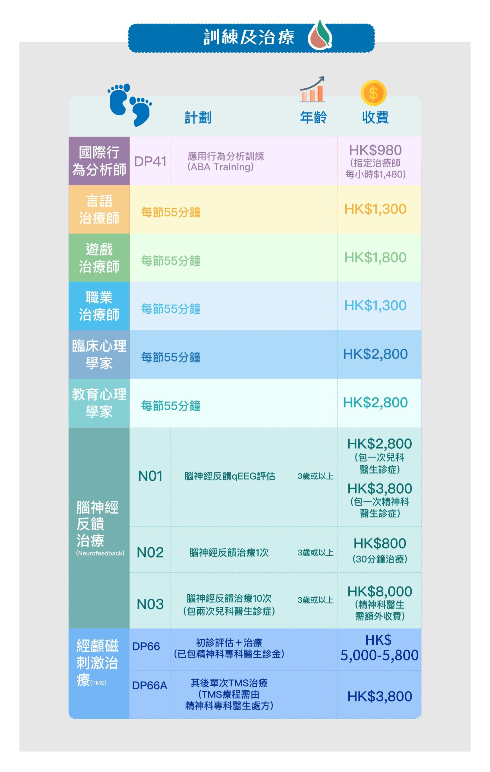 (包括不同的專科醫生、治療師作診斷及培訓規劃)